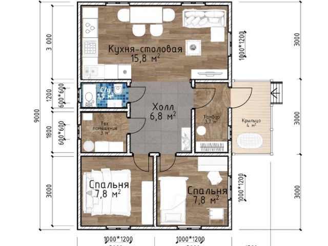 46.8 м², 1 этаж, каркасные дома