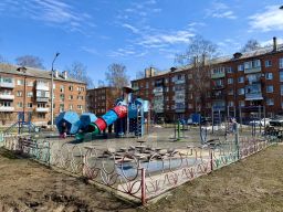 Во дворе большая детская игровая площадка.