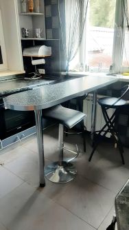 Предлагаемый для проживания дом это двухэтажное строение, где с комфортом могут разместиться большие семьи или компании друзей. В нем пять комнат, среди которых особенно выделяется просторная гостиная, объединенная с кухней. Кухонная зона полностью оборудована всей необходимой современной техникой: имеется микроволновая печь, плита, а также посудомоечная машина, что значительно облегчит бытовые хлопоты.