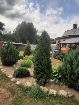 В доме предусмотрено два санузла, оборудованных для максимального удобства жильцов. Один оснащен полноценной ванной, где можно расслабиться после долгого дня, а второй стильной душевой кабиной. На территории участка расположены дополнительные удобства, которые сделают ваш отдых еще более приятным. Для самых маленьких жителей предусмотрена игровая площадка с батутом, а в теплое время года можно освежиться в бассейне. Небольшой огородик предоставит вам возможность вырастить свежие овощи и зелень, внеся вклад в здоровое питание вашей семьи.