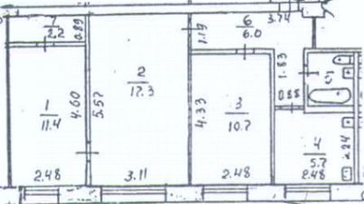 Комнаты смежно-изолированные: 17,3, 11,4 и 10,7 кв.м.