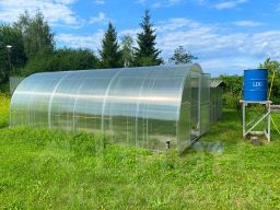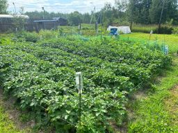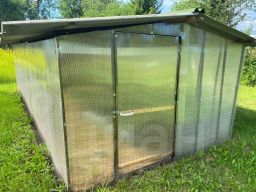 Большое количество сараев: два хозяйственных помещения, дровник и сарайчик для лопат и граблей. Ограждение участка с фасада штакетный забор на асбестовых столбах высотой 1,9 м. С остальных трёх сторон сетка металлическая на столбах из металлических труб. Новая (2022 г.) теплица из поликарбоната размером 6х3 м. Рядом металлическая теплица 6х2,5 м переоборудованная под летний курятник или крольчатник. Много фруктовых деревьев и кустарников. Много цветов. Большой участок выделен под огород, земля обрабатывается и удобряется. Соблюдён севооборот.