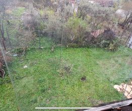 Лицевая сторона участка ограждена: забор из профлиста, по другим сторонам - сетка рабица.