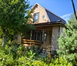 Дом 55 кв. м. каркасный два этажа. 1 этаж: летняя терраса, прихожая, с/у совмещен, кухня (пол линолеум), 2 комнаты 2 этаж: 2 комнаты и кладовое помещение (отсек для хранения вещей). Мебель остается.