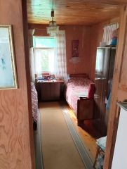 Дом с печью 5*7. В доме имеются две жилые комнаты и терраса (кухня). Дом полностью меблирован (диван, кровати, стенка-гостиная, шифоньер), есть необходимая техника ( холодильник, электрическая плита) Вся мебель и предметы быта остаются в доме по договоренности! На втором этаже еще две комнаты.