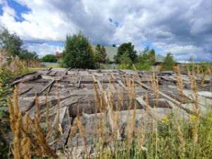 в продаже участок в деревне, рядом остановка транспорта, к участку есть свет, на участке скважина, есть разрешение на газ, участок межован, на участке фундамент 13 на 15, показ по звонку, фундамент накрыт но давно