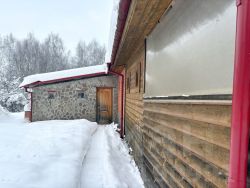 Дом площадью 87,7 кв.м.- изба . В доме 1 большая комната, кухня- гостиная,прихожая, предбанник, помещения для будущего санузла, мансарда, большая кладовая.