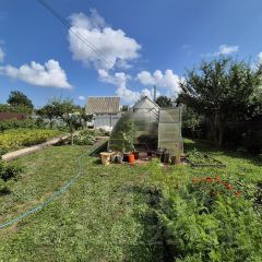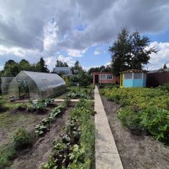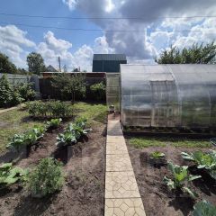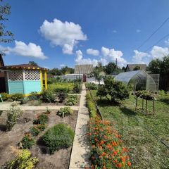 Участок 6 соток — ровный, сухой, правильной формы. Проведено Межевание. Огорожен со всех сторон забором из проф. Листа, есть ворота для въезда авто. На участке имеются посадки плодово-ягодных деревьев и кустарников ( яблоня, груша, слива, смородина трех видов, малина, клубника, крыжовник), посажено много различных цветов, а также есть грядки и большая теплица для выращивания овощных культур. Выложены удобные дорожки из плитки. Вода — Колодец (5 колец). Имеется удобная беседка и качели для релакса и отдыха.