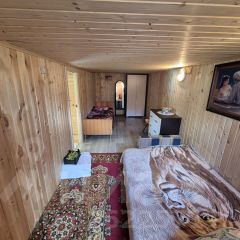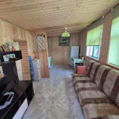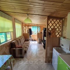 А также, на участке расположен дом. Общая площадь дома 35 кв. Метров. В доме — прихожая, просторная кухня-гостинная и одна спальня. В доме внутренняя отделка — вагонка, вся электропроводка новая. Имеется вся необходимая мебель и техника. Все Остается! В жару в доме прохладно, а в холод — тепло за счет высокопрочного материала.