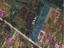 Земельный участок 25 соток, ширина 23 м, длина 114 м, правильной прямоугольной формы, не обработан.